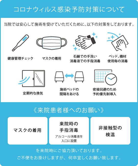 ※ほねつぎ(接骨院・整骨院)は、国家資格の有資格者が施術を行います。ご来院になる患者様及び当院スタッフの健康と安全を第一に考え、笑顔でお出迎え出来る様に感染症対策を徹底しながら、皆様のご来院をお待ちしております。