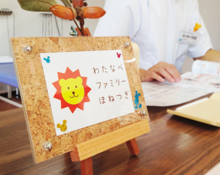 わたなべファミリーほねつぎは、国家資格である「柔道整復師」による治療を受けられる「接骨院」です。柔道整復師の資格は、国の定めた学校で専門知識を身につけ、国家試験に合格することでのみ取得することができます。公的に認められた専門家であるからこそ、「骨折」「脱臼」「捻挫」「打撲」「肉離れ」といった関節や筋肉の痛みの治療や、自費診療による「猫背矯正」「骨盤矯正」等の施術を安心して受けて頂くことができます。